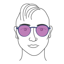 Pyöreät kasvot luovat pehmeän ja nuorekkaan vaikutelman. Otsa ja leukaperät ovat samassa linjassa. Poskipäät ovat kasvojen levein kohta. Posket ovat täyteläiset ja leukalinja pyöreähkö. Terävälinjaiset, kulmikkaat kehykset ovat edukseen pyöreillä kasvoilla. Vahvat ja värikkäät mallit toimivat erityisen hyvin. Kehysten alareunan tulisi asettua poskipäiden yläpuolelle. Kasvoille kannattaa mallata monikulmaisia ja retrohenkisiä kehyksiä.